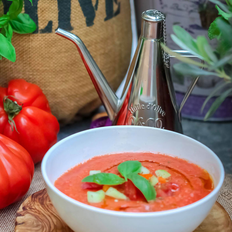 Gazpacho, the cold soup made from stale bread; garlic; olive oil; wine vinegar; water; and salt, is widely believed to have been brought to the region by the Romans. From humble beginnings as a staple for peasants and shepherds in the south of Spain, its recipe has evolved to include tomato and is now commonly served as a starter, accompanied by crusty, warm bread.